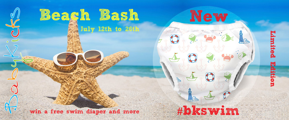 BabyKicks is well-known in the cloth diapering community for their great-fitting, good-looking and highly breathable diapers. And they’ve just launched a new line of swim diapers in sizes small to extra large! They feature a cute poly knit print outer with PUL backing and a poly mesh quick-dry inner lining. BabyKicks swim diapers snap at the side, so they look less like a “diaper” and are easy to get off in case there’s an accident. The cute “Anchors Away” print is gender neutral and the price is just $13.95!