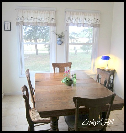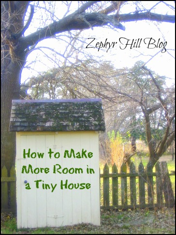 10. Use glass, metal and light colors. Heavy or dark furniture and somber colors will make a small house seem even smaller. When we moved into that small farmhouse the tiny dining room was a deep, dark red with heavy, formal drapes at the windows. We repainted it a light airy hue called Country Dairy and hung up only valances on the windows (we were in a very private country setting). The transformation was dramatic! Using glass or metal furniture also “lightens up” a home and make it feel more spacious. It may not be usable space, but the psychological effect is huge.