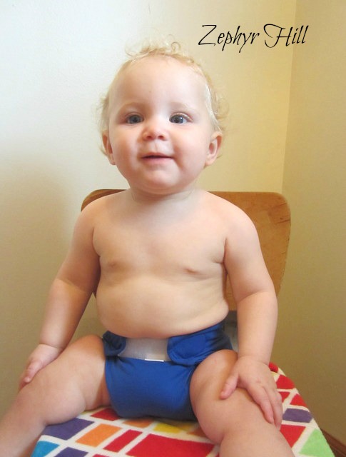 Performance: This is a true AIO diaper that can be worn as is. I tested it with the extra soaker pad in place. Ingrid wore it during a 3 hour nap the first day. It was completely soaked, but no leaks escaped, so it passed the absorbency test. The double gussets are good at keeping the wetness inside the elasticized channels; after Ingrid had worn the diaper for several hours the outer gussets were completely dry to the touch.