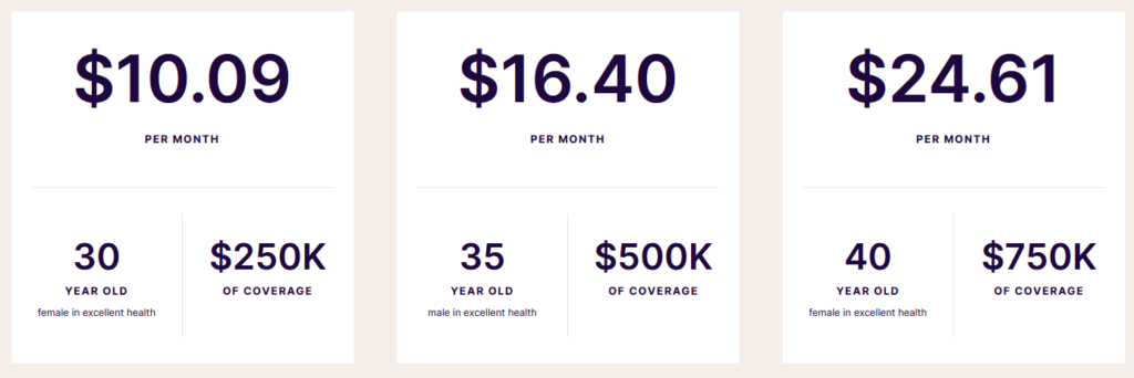 Most people are surprised by the affordable price for a huge amount of term life coverage. Check out these rates for a women in excellent health: