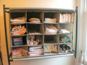 Although I've got three children in cloth right now, it doesn't really matter how many you're diapering before the stuff begins to pile up. Diapers, covers, wipes and all the accessories.........even the roomiest changing table can quickly begin to overflow! Luckily, I discovered the perfect solution to my storage problems: a shoe organizer with a sturdy metal frame and durable canvas pockets. We purchased it at Walmart and had it put together in 15 minutes. The shoe compartments Continue Reading